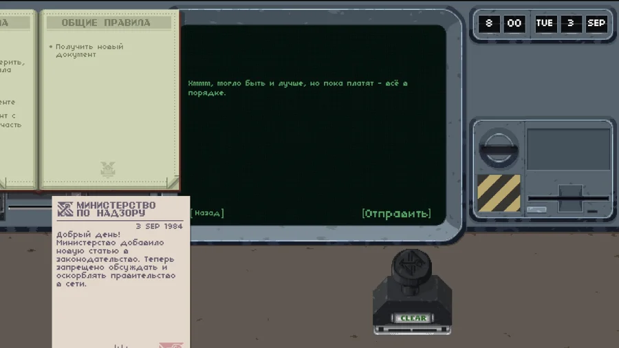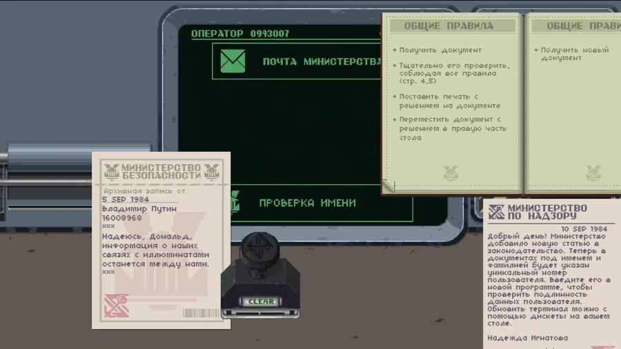 Описание к игре Bystander: Ладно, смотри. Ты - типа сотрудник политической полиции, ну, прям такой “контролёр всего”. В игре Bystander тебе надо сидеть на страже порядка и выискивать всех, кто хоть как-то не согласен с режимом. Все эти революционеры - твоя головная боль. Если кто-то задумает выкинуть что лишнее - ты должен первым поймать. Не расслабляйся, тут даже на секунду отвлёкся - уже куча проблем. Ты отвечаешь почти за каждого жителя. Докопаться можно до любого. Законы тут меняются часто, только успевай читать и применять. И вот ты сидишь, выписываешь предупреждения, кого-то наказываешь. Кого-то - просто так, для профилактики, вдруг надумает бузить. Если проморгал - получишь по шапке сам. Иногда реально нервно, но и смешно бывает, когда кто-то спецом подколоть пытается. В целом, игра не про добро и зло - а про выживание в системе, где всех держат в ежовых рукавицах. Странное чувство, когда понимаешь, что сам бы, может, и сбежал отсюда. Но ты на службе, так что - делай, что велено.