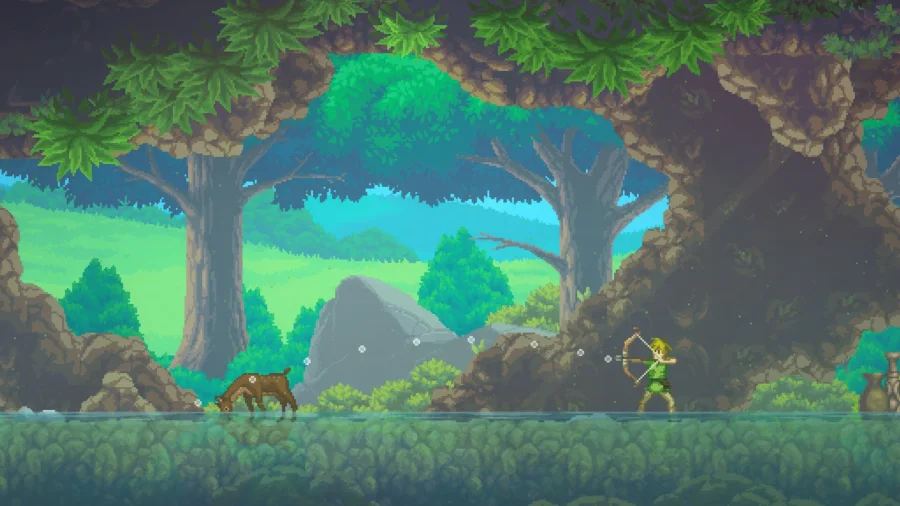 Описание к игре Faeland: Смотри, рассказываю, что тут за движ. Есть игра, зовут её Faeland. Ты играешь за чувака по имени Сэм, он охотник. Вокруг - такой прям олдскул, восьмибит, пиксели и всё такое, как раньше на приставках. Атмосфера кайф. Бегаешь по лесам, пещерам, вообще где угодно. Смотришь под каждый камень, вдруг что-то лежит. Тут реально сто́ит шариться в закоулках, самые крутые штуки иногда там, где не ждал. По пути постоянно кто-то лезет драться. Местные монстры - вообще не подарок. Без нормального оружия тут делать нечего. Кстати, что возьмёшь в руки - очень важно, это меняет вообще всё. Не хочешь драться? Можно просто бродить, искать сюжеты, копаться в истории. Никто не гонит, успеваешь всё изучить. Иногда смешно, иногда неожиданно грустно, зависит от настроения. Мне нравится - нет ощущения, что тебя куда-то ведут за ручку, сам решаешь, куда пойти. Если любишь приключения и копаться в деталях - мимо не пройдёшь.
