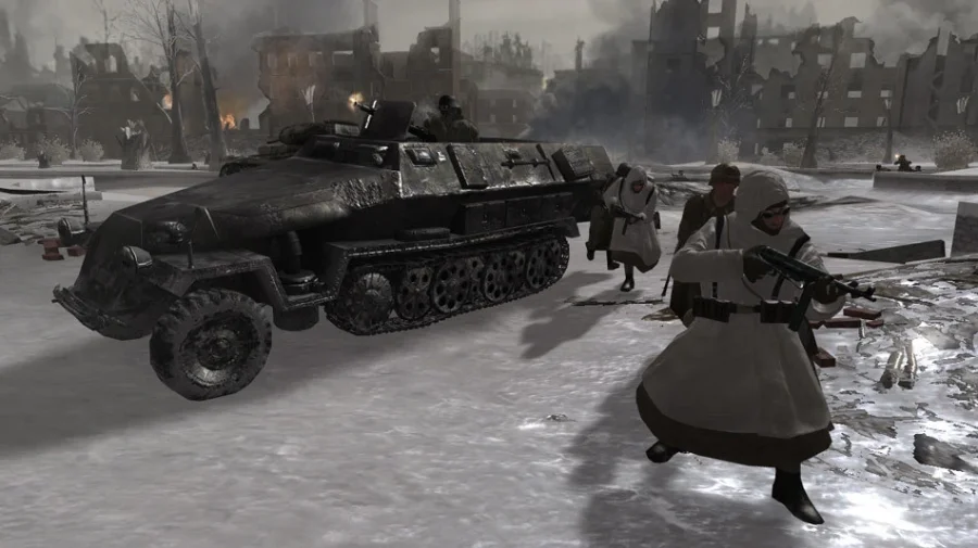 Описание к игре Call of Duty 2: Окей, смотри. В Call of Duty 2 ты сразу попадаешь в самую гущу войны. Всё - от первого лица. Чуть моргнул - и тебя уже придавило осколком. Мировая война, как есть, без прикрас, никакой романтики. Выбора - аж три кампании, причем совсем разные. За советов, бритов или американцев. Какой фронт, такой и движ. Прыгаешь по разным заданиям, вечно на передовой, пули свистят, взрывы гремят. Не тупи - оружие нужно заряжать, иногда лучше пойти в обход, а не прямяком на пулемёт. Не геройствуй без нужды. Тут реально сложно, враги не тупят. Кампания разбита на десять больших кусков, в каждом ещё по куче миссий. Легко не будет, но атмосфера вообще топ, реально цепляет. Советы? Следи за патронами. И не забывай голову включать. Короче, если любишь экшен и не боишься выхватить по полной - это точно для тебя.