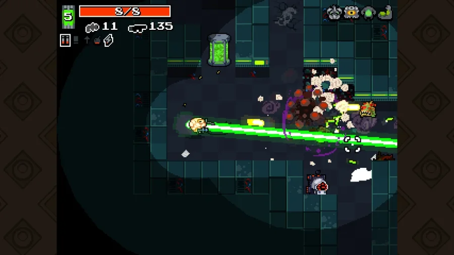 Описание к игре Nuclear Throne: Короче, тут такой движ - мир развалился. Вирус всех превращает в мутантов, прям вот вообще всех. Ты, типа, человек, но уже настолько мутировал, что в зеркало лучше не смотреть. Только башкой ещё соображаешь. Приятного мало, но выбора всё равно нет. Локации разбросаны жестко, каждый раз новые. Скучно не будет. В Nuclear Throne спокойно не получится - монстры лезут, хотят тебя сожрать. Со всех сторон. Сидеть в кустах? Не вариант, рано или поздно найдут. Оружие как воздух: без него тут сразу в расход. Мутировать - не стыдно, тут этим только выживают. Чем круче твоя мутация - тем больше шансов, что не сожрут сразу. Всё на скорости, на инстинктах. Умер? Пробуй снова, никто не осудит. Тут каждый раз что-то новенькое. Ай, да, ещё ловушки, пули и вообще хаос. В общем, главная цель - выжить, а там разберёмся. Каждый уровень будто экзамен на реакцию. Не тормози. И не засиживайся, а то мутанты не дремлют.