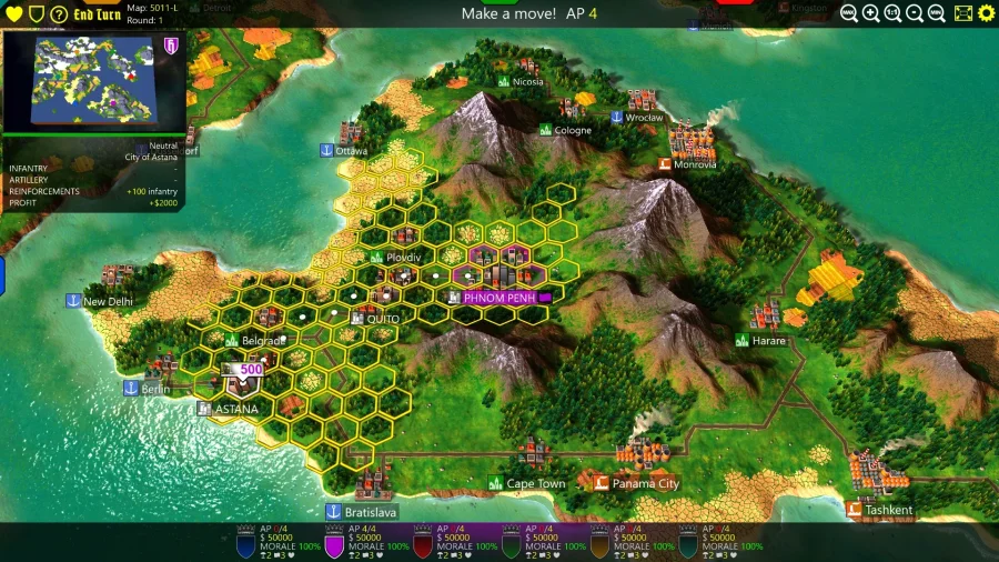 Описание к игре Hex Empire 3: Так, слушай, тут всё просто. В Hex Empire 3 ты местный босс. Хочешь стать диктатором или просто потестить себя на прочность? Вперёд. В игре куча карт. Они не повторяются - генератор карт творит что хочет, так что одинаковых игр почти не бывает. Вся суть - захватить всё подряд, пока остальные не очухались. Да, здесь можно и по уму, и “на тарана”, зависит от настроения. Особенно прикольно - тащиться с друзьями в одной комнате, по старинке, каждый за свой цвет. Иногда получается крутая заруба, иногда все косятся лютой командой на NPC. Как хочешь. Можно даже своим картам жизнь дать - создал, отыграл, уничтожил всех. Классно, когда видишь, как твой план работает (или летит к чертям). Ну и стратегию тут надо включать, мозги пригодятся. Можно играть часами, потому что каждый раз начинается всё заново, шанс на отыгрыш всегда есть. Просто пробуй, изучай новые регионы, иногда ржёшь, иногда бесишься - обычная жизнь. В общем, если скучно - здесь точно не про тебя. Играть можно сколько угодно, даже если всё давно захватил.
