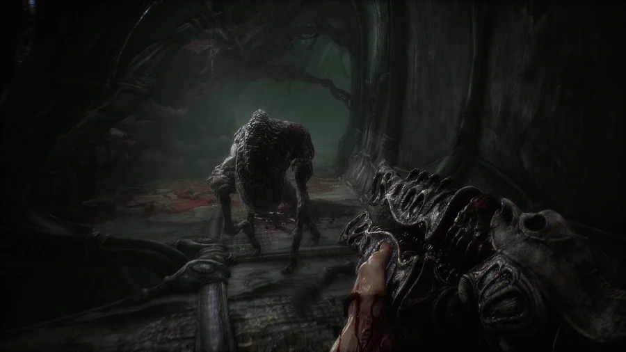 Описание к игре SCORN: Ты просыпаешься где-то. Муторно - вокруг слизь, мясо, что-то стонет за углом. Почему ты здесь? Без понятия. В SCORN всё тебе будет казаться странным и неправильным. Тут нет уютных светлых комнат, везде какой-то мокрый ужас, кресты из костей, биомеханические штуки. Гуляешь один, оружия почти нет, подсказок тоже. Просто ты и эта странная вселенная, где всё пульсирует, дышит и не особо-то дружелюбно. Каждый поворот - напугать или подкинуть загадку, а иногда и оба вместе. Местные обитатели - даже не пытайся подружиться, убьют. Вроде бы хочется выбраться, но как? Тут всё не так, как думаешь, логика как будто из кошмара. Коридоры идут кругами. Куча дверей, механизмы, какие-то органы вместо кнопок. Тыкаешь - что-то шевелится, что-то хрустит. Задач тут хватает. Где-то открыть люк, где-то собрать механизм, где-то - спрятаться. Всё на интуиции. Никто не за ручку не поведёт, сам во всём разбирайся. Игра не торопит, иногда даже заставит постоять и подумать - а вообще стоит ли туда лезть? Спойлер: придётся. Скучно точно не будет - мрак, шумы, ужастики, ощущение, что кто-то следит. Вышел - и реально выдохнул, будто сам по кошмару прошёл.