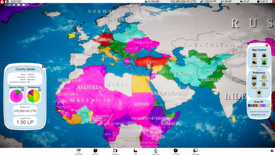 Описание к игре Computer Tycoon: Сначала ты вообще никто. Сидишь без копейки, с пустыми руками, даже ноутбука нет. Семидесятые - всё только начинается. И вот ты лезешь в компутерный бизнес, где пахнет свежими микросхемами и мечтами о славе. В Computer Tycoon идея - самое главное. Без нее ты просто крутишься на месте. Нашёл её? Круто, теперь ищи толковых людей. Придётся уговаривать, обещать, может, даже схитрить - главное, чтобы работали на твою идею. Стартуешь с мини-команды. Собрал разработчиков, и пошло-поехало: кодят, спорят, пьют кофе. Пилишь первую железку. Потом операционку. Всё на свой страх и риск - гарантий ноль. Дальше начинается какой-то цирк: клиенты капризные, рынок бешеный, конкуренты кусаются. Хочешь денег - убеждай всех, что твой комп круче. Иногда приходится идти на трюки, лишь бы про тебя услышали. Мир открывается постепенно: сначала вроде бы только свой район знаешь, а потом - бац! - и офисы по всему свету. Но расслабляться нельзя, всегда кто-то дышит в спину. Короче: вся жизнь - борьба, нервы, но если прокатит - станешь легендой в компьютерах. Меня прикалывает этот драйв, честно. Кто знает, может, ты как раз тот, кто сможет всех обойти?