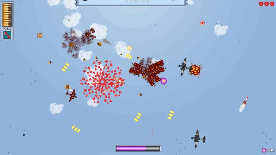 Описание к игре Frequent Flyer: Окей, смотри. Тут ты не просто летаешь - тебе дают боевой самолёт, сразу в руки. Всё. Дальше сам. Надо стрелять и уворачиваться, реально иногда испарина пробивает. Старый добрый аркадный стиль, только не про динозавров, а тут всё бодро, пиксельно и с мясом. Противники наглеют, прут толпой, ну вот классика, да. Если не качаешь самолёт - будешь страдать. Улучшения просто must have: новые пушки, разные плюшки к оружию, и вообще - просто собирай всё, что не приколочено. В Frequent Flyer четыре режима, так что скучно не будет - тут каждому хоть что-то зайдёт. Миссии кидают сразу одну за другой. Первая простая, а к десятой уже думаешь: "Кто всех этих злодеев выпустил?" Если стараешься, потом открываются другие самолёты, помощнее. Без этого против серьёзных боссов - ну, такое. Заданий много, двадцать разных, и каждое сложнее предыдущего. Лутаться тоже никто не запрещает - ищи бонусы, патроны, апгрейды. Иногда реально спасают. Победил врага - кидают бонус. Всё честно. В общем, щёлкай - и понеслась. Тут главное не тормозить.