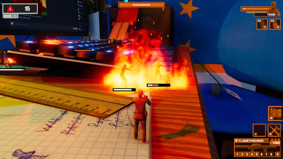 Описание к игре Attack on Toys: В Attack on Toys всё просто: ты - игрушечный солдат, которого судьба зачем-то закинула в эпицентр войны. Не просто бегать и стрелять, а реально строить свою армию, таскать за собой этих пластиковых друзей, командовать ими. Тут не только шутер - тут и мозги нужны. Придётся постоянно решать, кого послать вперёд, кого оставить в тылу. Место действия - вроде обычная детская комната, а враги как на подбор - все хотят тебя разорвать. Приказы раздаёшь сам, ошибся - ловишь по полной. Территории? Их тут куча, и за каждую надо держаться до последнего солдатика. Врагов много, и они не тупят. Тут работы выше крыши: качаешь солдат, сам становишься сильнее, ищешь новое оружие. Арсенал, кстати, приличный - можно поиграть с разными пушками. В общем, не соскучишься. Атмосфера олдскульная, графика яркая, классная, прямо затягивает. Одно скажу - расслабиться не получится, но зато весело.